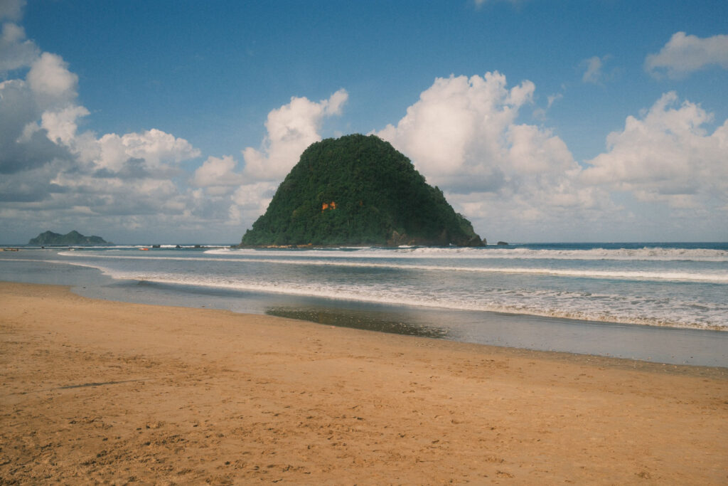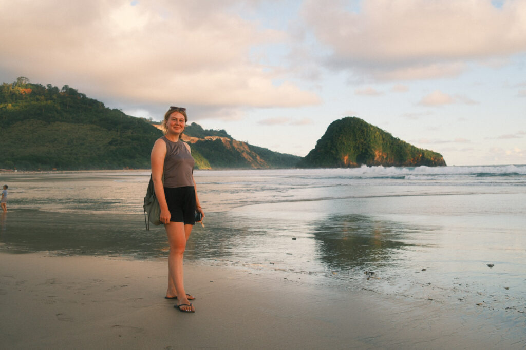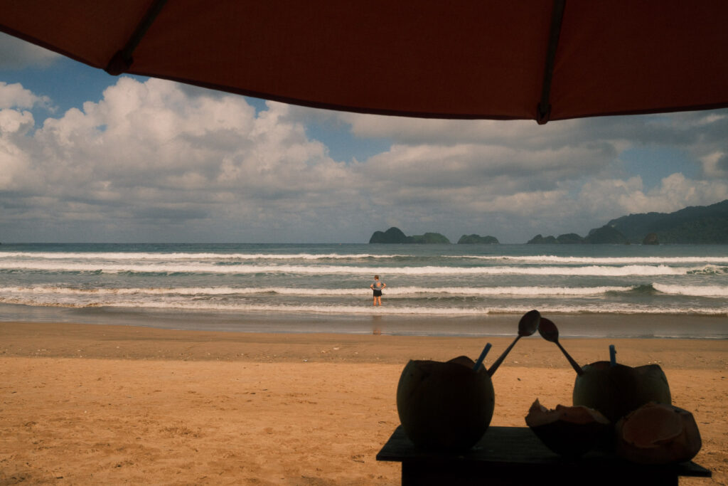Red Island Beach was our first stop in Banyuwangi. To avoid confusion off the bat, this is a beach, not an island. There is an island off the beach, but it’s not so red to be the obvious reason for the name. It’s a remote spot, and whenever we told people in Bromo where we were heading next they had no idea where it was, in general. It’s a gorgeous golden beach on the South coast; wide, deep and fringed with palm trees. Stands dot the beach, selling fresh coconuts and instant noodles. The ocean is quite fierce here, the waves crashing down angrily throughout the day. It’s not a good place for swimming unless you like getting beaten up, but we’re not here to swim…